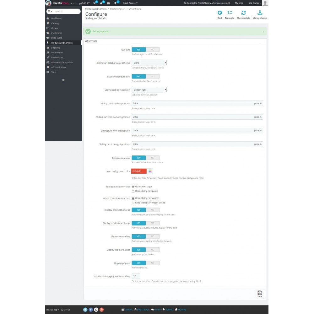 Block sliding cart module is a great added value for Prestashop websites to replace any kind of dropdown cart that causes issues on mobiles devices. Easy to install, works smoothly and fast. It has a lot of options in the back office to tweak the module. Also great support from module developer to add some extra features that were not present in PS 1.6 version. Thanks!